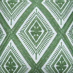 Details | Olefin cover, Embroidered diamond design in green and white, Reverses to embroidered X design in green and white, Fiber filled, Zipper closure, Made for indoor/outdoor use, Imported, Machine washable cover | |
