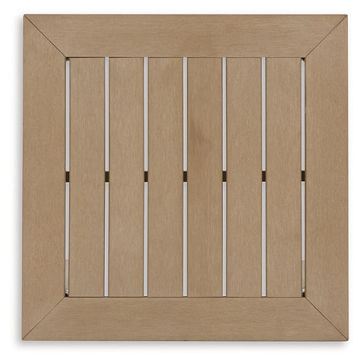 This end table is a beautiful addition to any outdoor living space. Effortless in its simplicity, this piece echoes your easygoing sensibilities. Combining durable, cutting-edge engineered materials, its Weatherwood construction in a blond wood color enhances the contemporary design. Pair this table with the matching sofa and chairs for a spectacular backyard or patio seating arrangement.