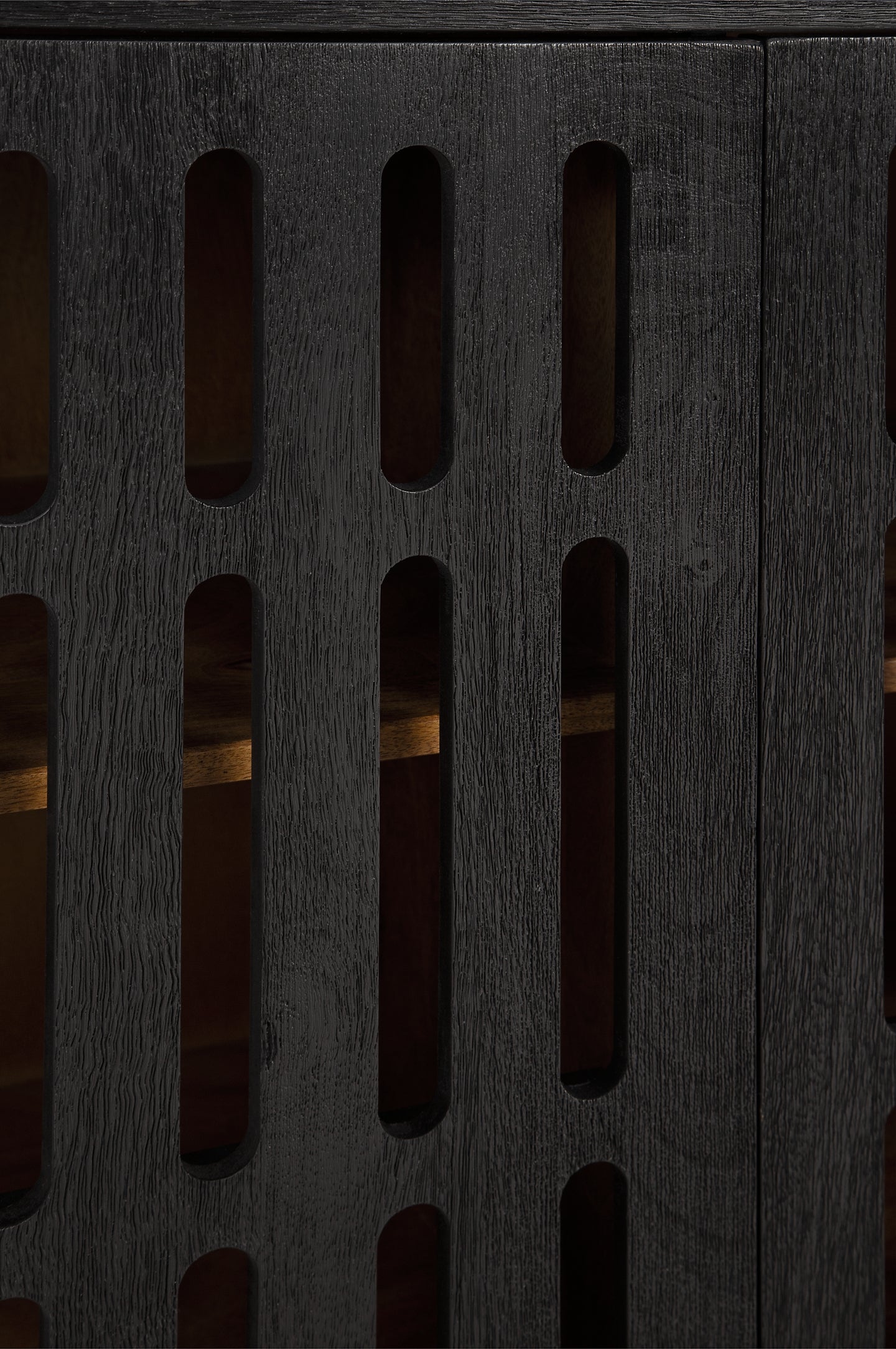 Details | Made of mango wood, Exterior with black finish, Wire brushed effect, Interior with natural finish, Metal legs with black finish, 3 doors with magnetic push latch function, 3 shelves, Openings in back for electronics, Minor assembly required; simply lay flat and attach legs | |