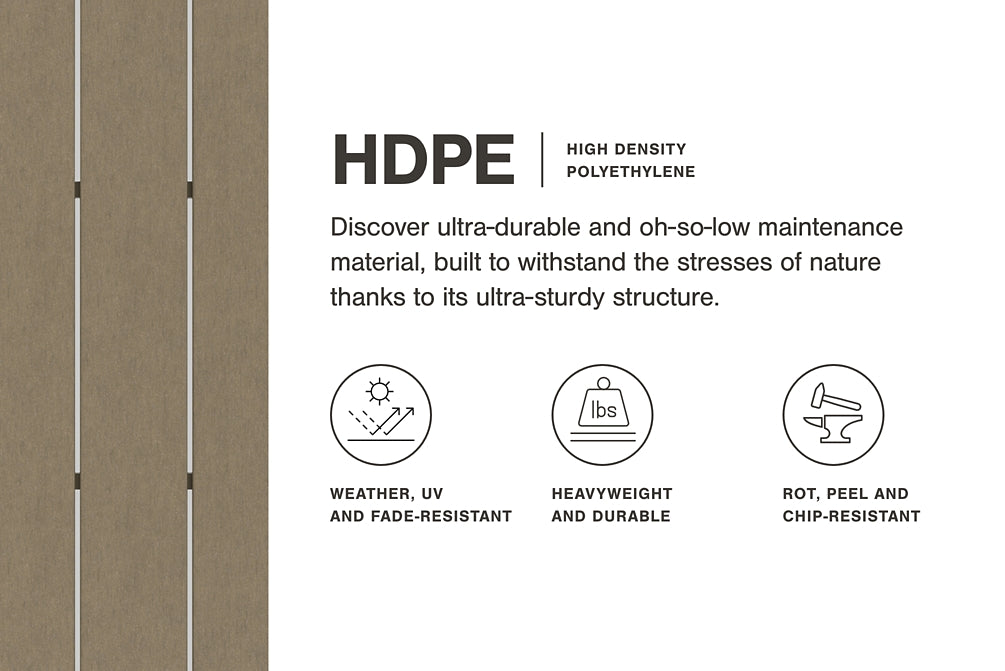 It’s the dawn of a new day for gray. Embrace the style trend with this outdoor lounge chair. Crafted of HDPE material that combines the exceptional durability and weather resistance you need with the “wood look” you love, this comfortably cushioned outdoor chair takes outdoor living to a whole new level. Rest assured, the thick seat and back cushions are wrapped in our exclusive Nuvella® high-performance fabric that’s fade resistant, stain resistant and a breeze to clean.